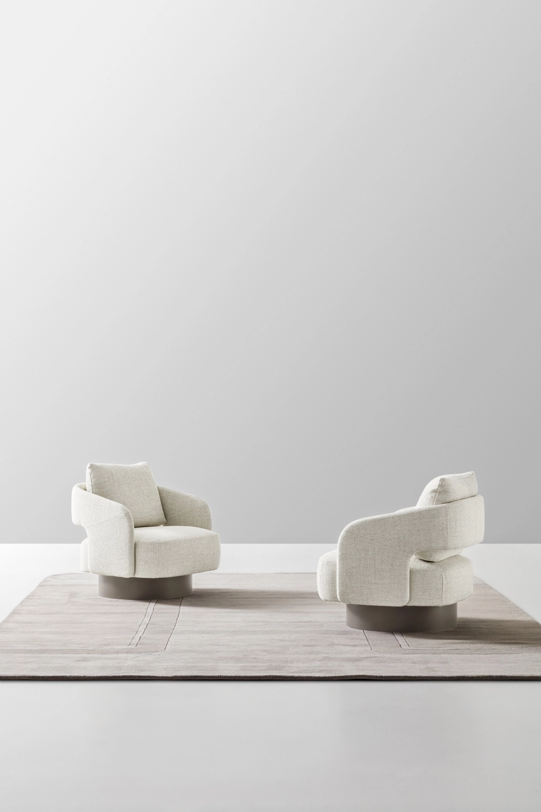 Inspired by the most stylish sports car seat upholstery, the body of the 356 chair is enveloping and linear, with rounded yet stark profiles. The seat is housed in a base which can either swivel or consist of four metal feet.