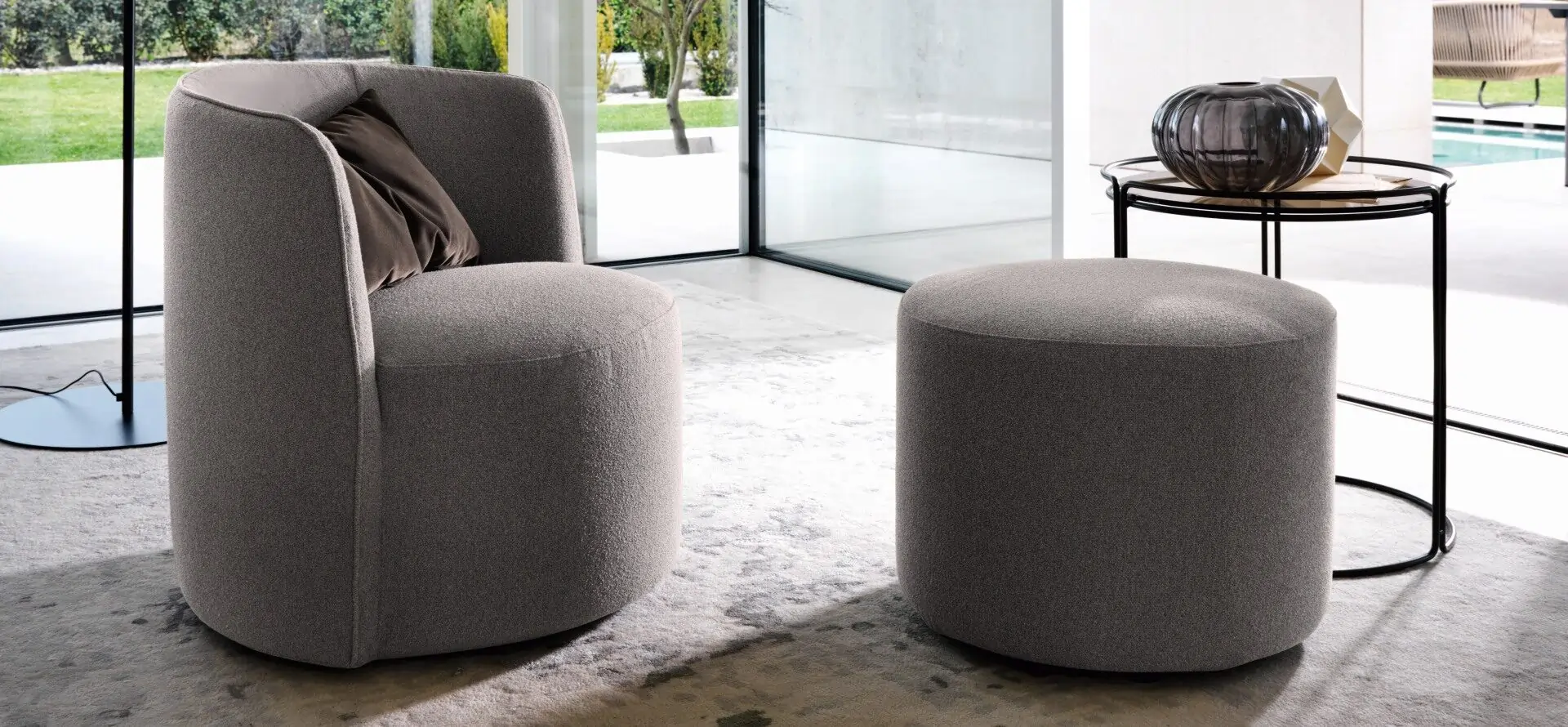 Softly padded round shapes for an armchair that becomes a cosy nest.