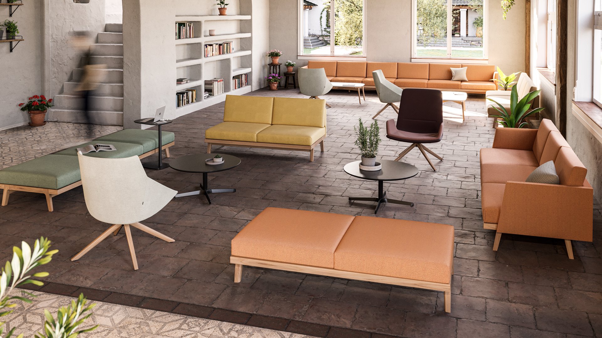esPattio designs stimulating, cozy and contemporary furniture that revitalizes workspaces from a humanist outlook inspired by the south. Light, colour and warmth in a unique soft seating proposal.