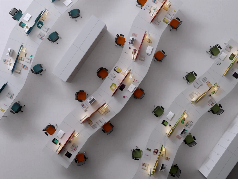 Snake configurations, multilevel partitions, new forms of workstation storage, links, counters and meeting tables. All this and more, combined with a light and exclusive design, is offered by the new M10 system range