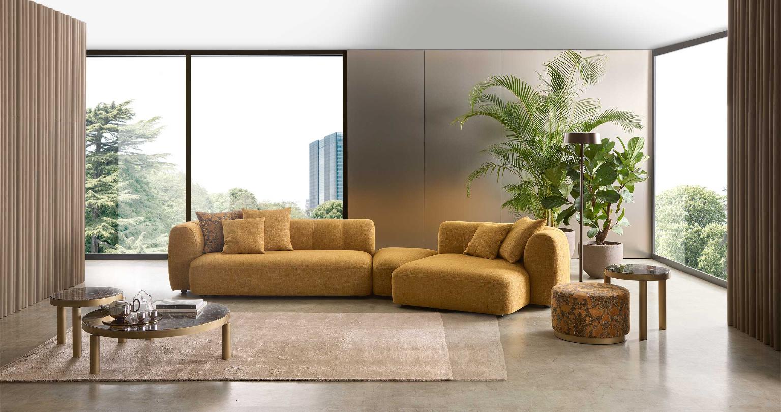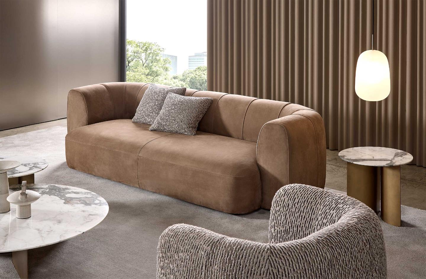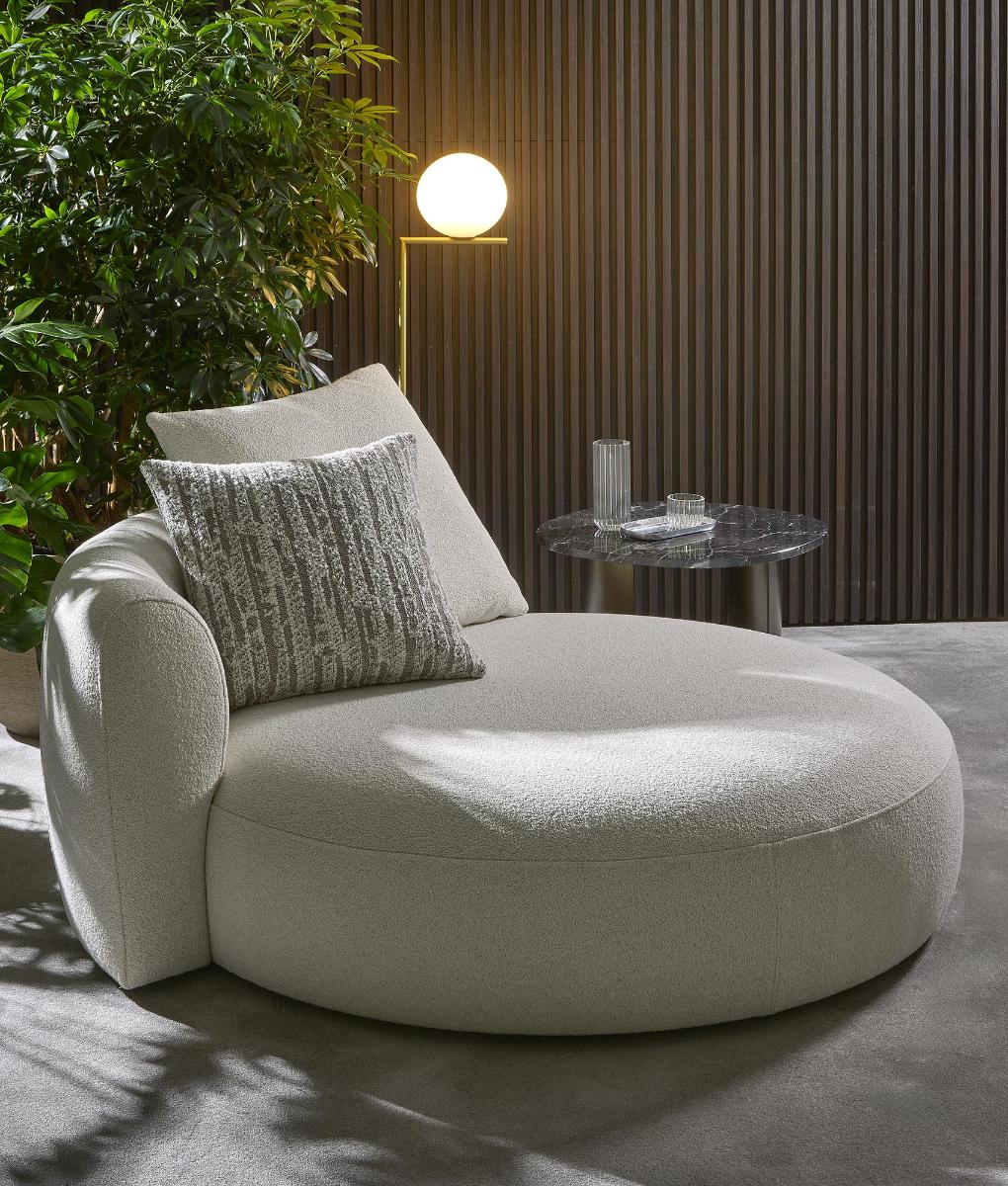 Milo sofas, dormeuses and armchairs are characterised by a sinuous, enveloping design with soft lines inspired by the glamour of the 1980s. This style gives them a cosy and familiar look, perfect for creating a warm and comfortable ambience. The range of modules in the catalogue makes it possible to create compositions that adapt to different spaces and layouts.