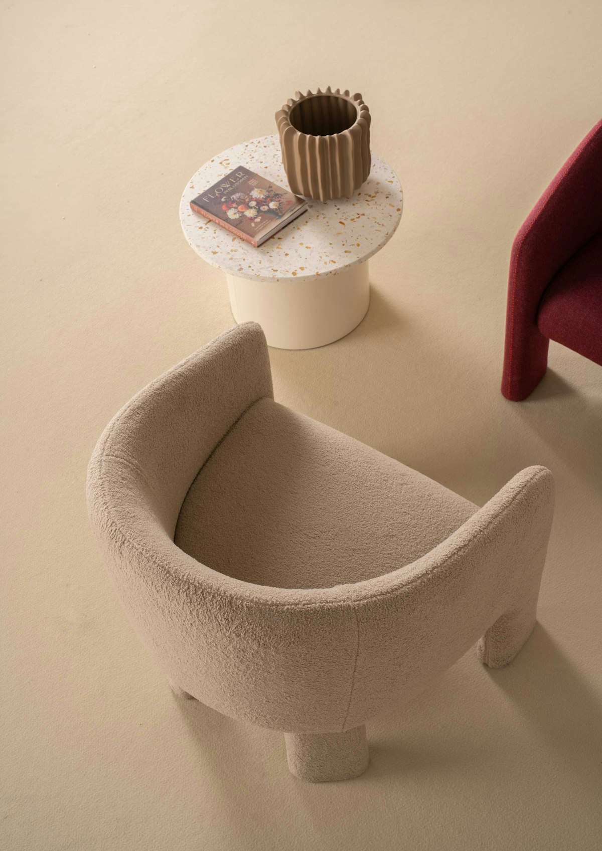 Lounge chair with an exclusive design free of stylistic contaminations, the enveloping shape of the back ensures maximum comfort.