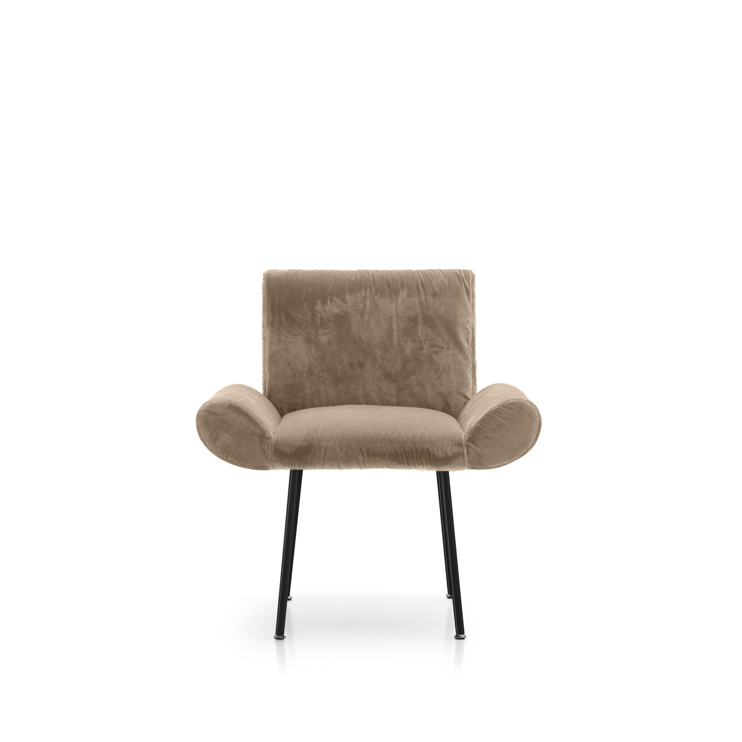 Upholstered armchair characterized by soft and sophisticated shape suitable for community, residential and hotels environments as well. Thanks to its compact dimensions, the design of the armrests and the possibility of customization, Ginevra is always elegant and classy.