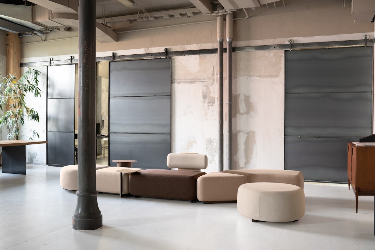 Grand Tour is the seating collection with a simple design and friendly aesthetic. Few padded elements, easily attachable to each other and able to create comfortable compositions to which backrests and tables can be added as well.