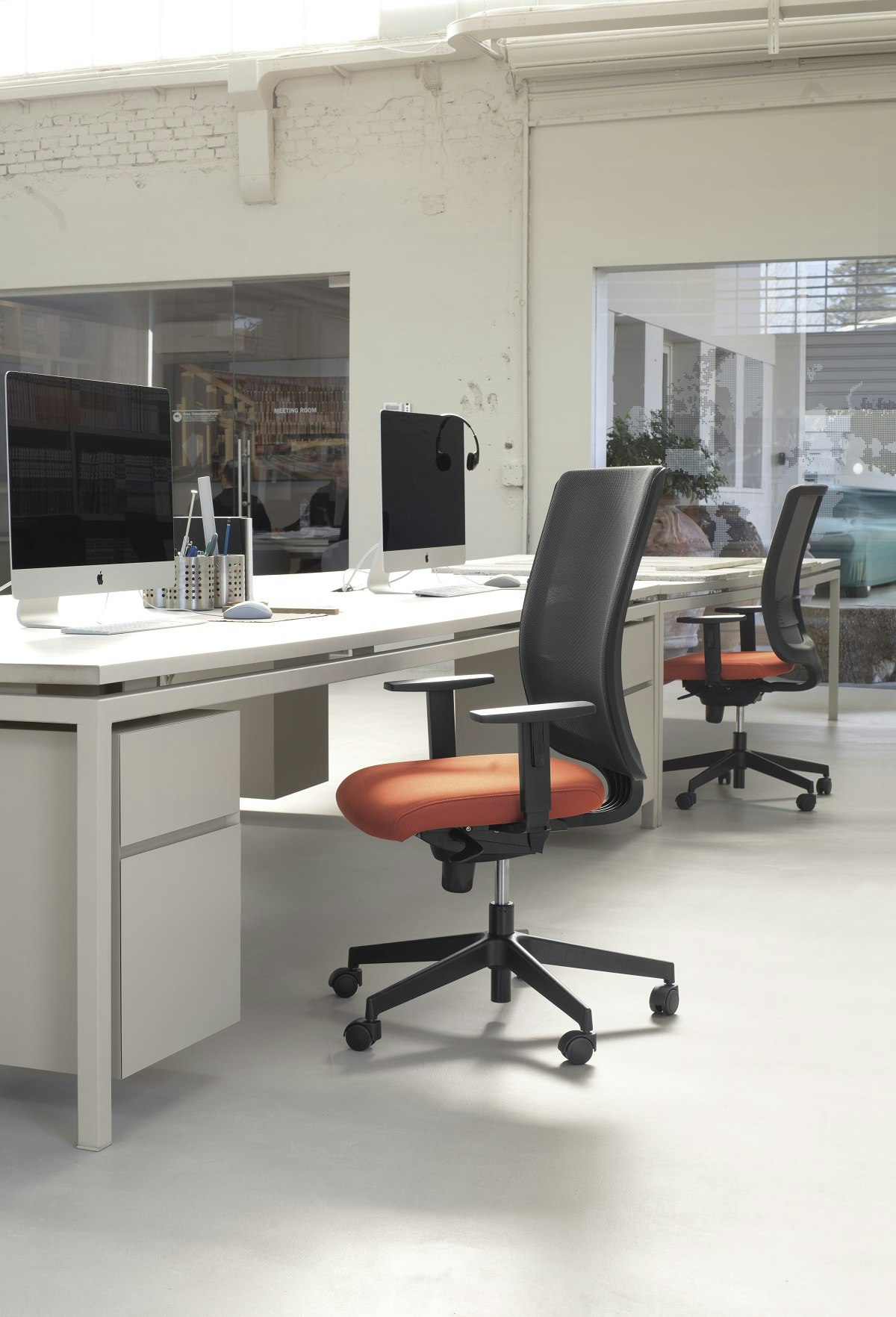 Link features a mesh membrane coming in many colours, a comfortable adjustable lumbar support and elevating armrests. The asset definition mechanisms make it practical and comfortable.