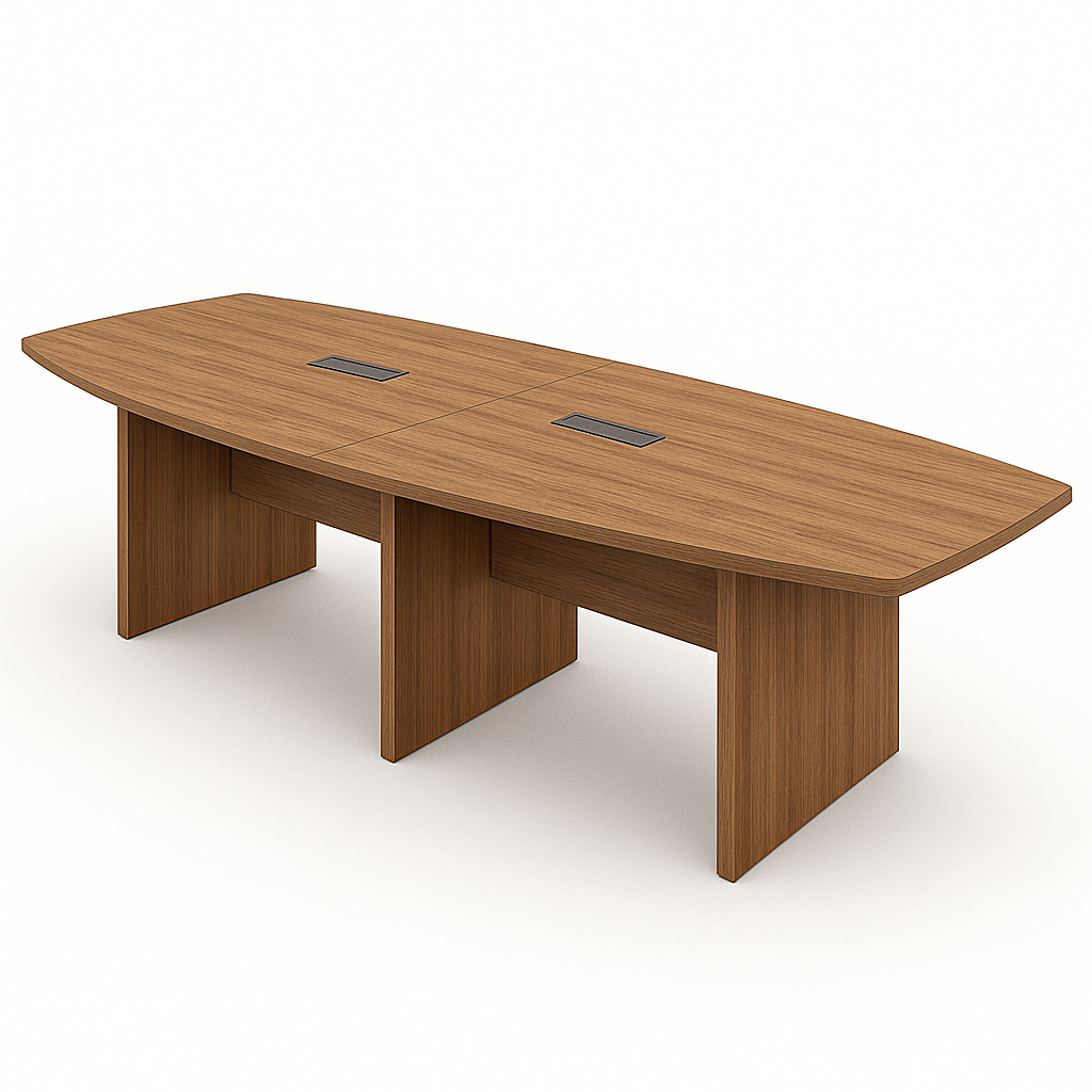 Duvra By Libero – Boat shape Natural wood finished Dual modesty panel to hide cable tray & vertical cable riser Complete cable management from ground or wall to working top Top access Cable tray (80 cm minimum width) Vertical cable riser size : W4000 x D1100/1400 x H750 mm