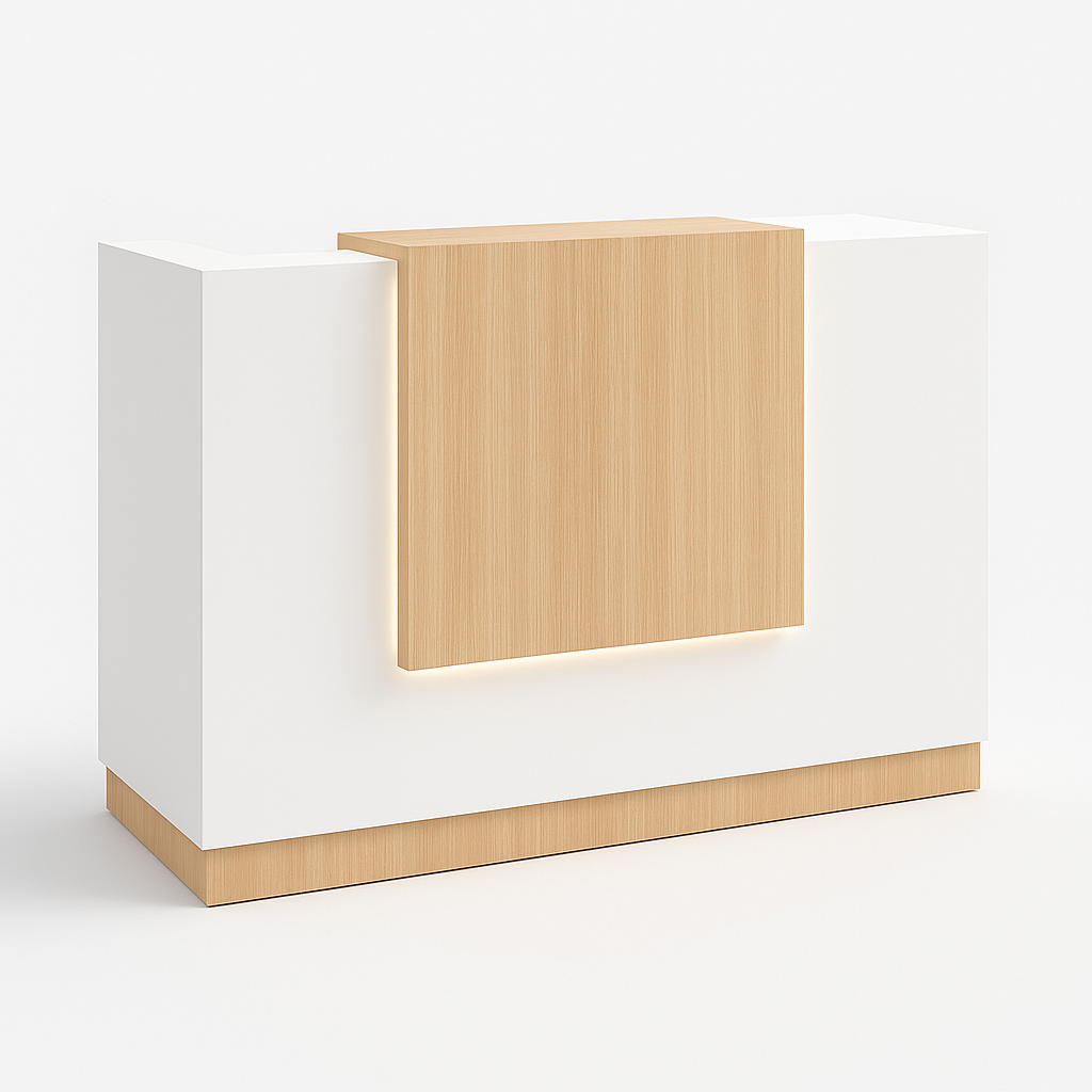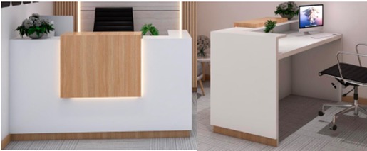 Elore By Libero – Reception desk with Top made in melamine 25 MM Thickness, With LED Lights Dimensions: 150 x 70 x 110 cm H