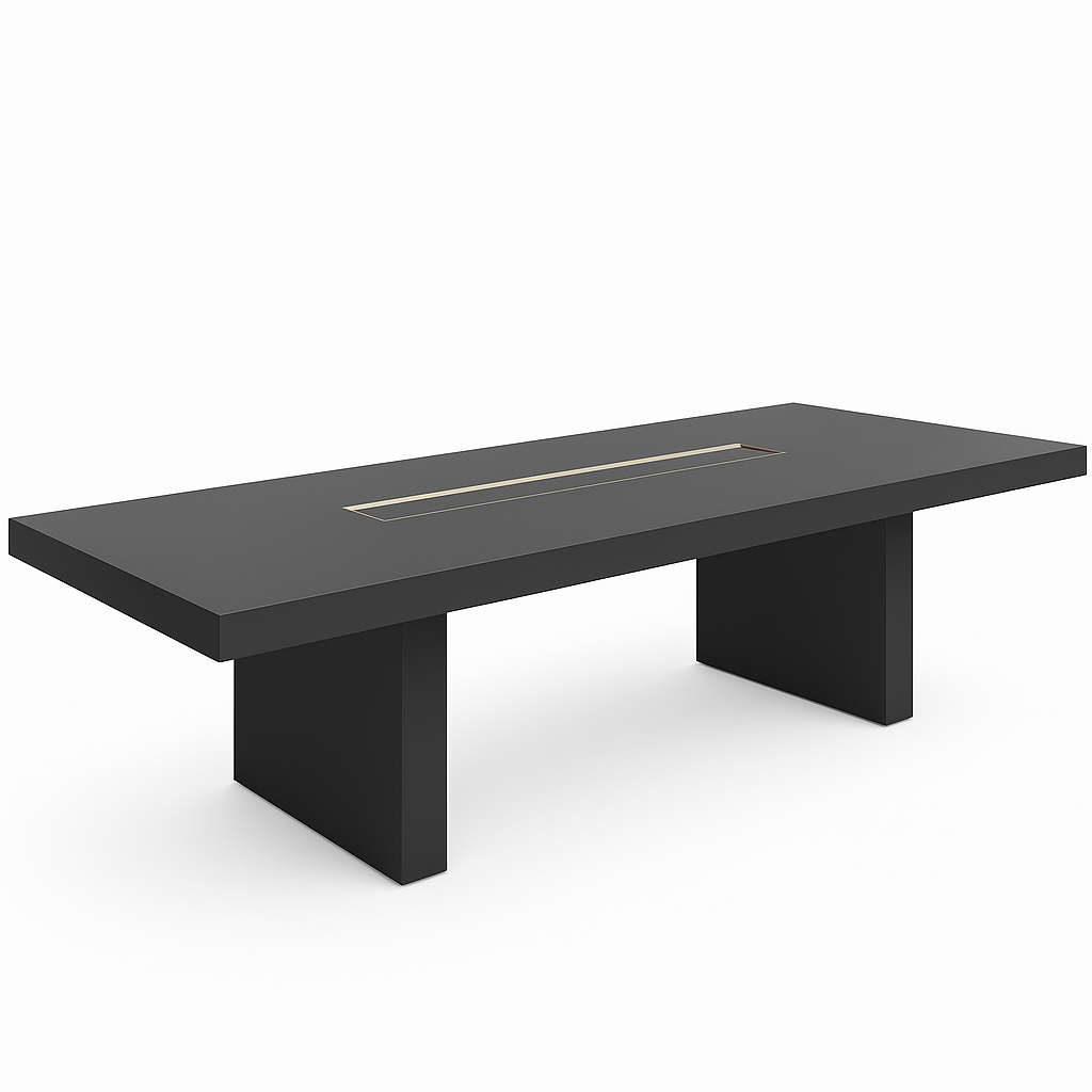 STEALTH by Vanta – Meeting table, legs in wood veneer, ash stained to black color With open pores Top in leather in black color Size: L 450 x W120 x H76 cm)
