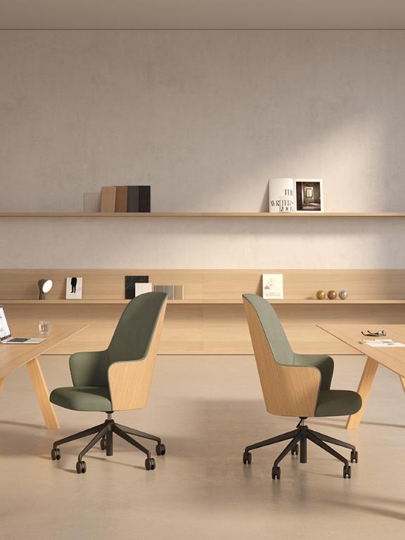 With great taste, our Aleta Executive chair has arrived to transform corporate spaces into sophisticated enclaves to feel inspired and comfortable. Available in multiple finishes and bases, the executive chair designed by Jaime Hayon allows you to combine two different materials in its interior and exterior, making it a unique piece to work with for long hours. Recommended for meeting rooms, presidential offices, training hubs but also in contemporary living rooms.
